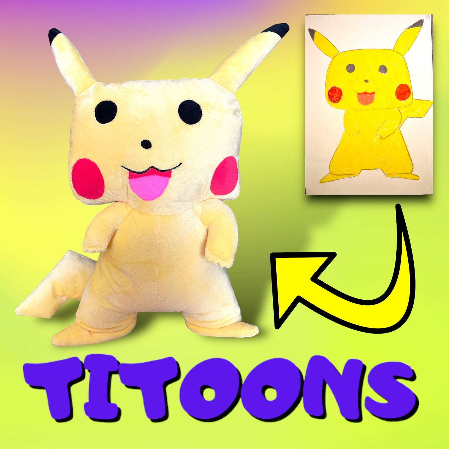 Chez Titoons, nous croyons que l’imagination des enfants mérite de prendre vie. C’est pourquoi nous avons réalisé ce magnifique doudou Pikachu, directement inspiré du dessin d’un enfant.